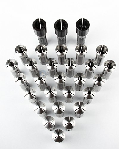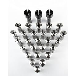 High precison 29 piece set includes 1/32-25/32″, 27/32, 29/32, 31/32 and 1″ R8 collets
