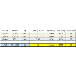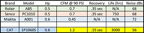 Robust 0.6 HP (rated / operating) – 1.20 CFM @ 90 PSI