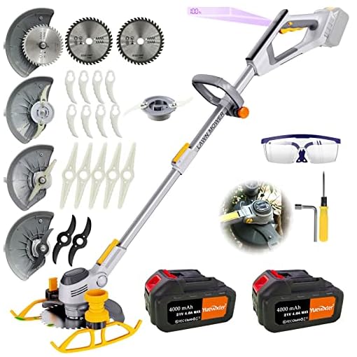 🌿【Newest Weed Wacker】: 2023 4th Generation Saw Blade Mower, 3-in-1 Grass Trimmer/Edger lawn instrument/Mini-Mower – for more power and functionality whilst gardening! Comprises 1 x cordless lawn trimmer, 1x Protection coverage, 2 x battery and charger, ninety° rotary head and telescopic Deal with, Aspect wheels and assisted sliding, and Provided with power digital show, 15 nylon blade, 4x blade.