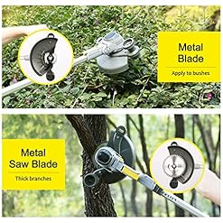 🌿【Service and Package Included】Package contains: 1 x Weed Wacker Battery Powered, 2 x 2.0A battery packs, 1 x power adapter, 2 x saw blades, 2 x metal blades, 5 x nylon blades, 10 x double nylon blades and 1 Protection glasses. We offer 24-hour friendly customer support to stay you away from after-sales worries.