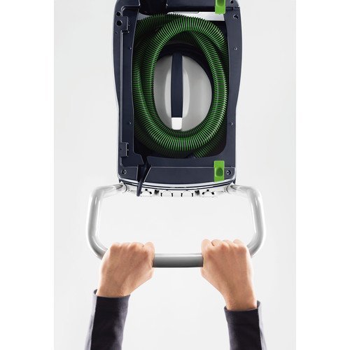 Sys-dock and hose garage feature allows for the storage and transport of Festool Systainers (not included) on the top of the flat, low-profile unit