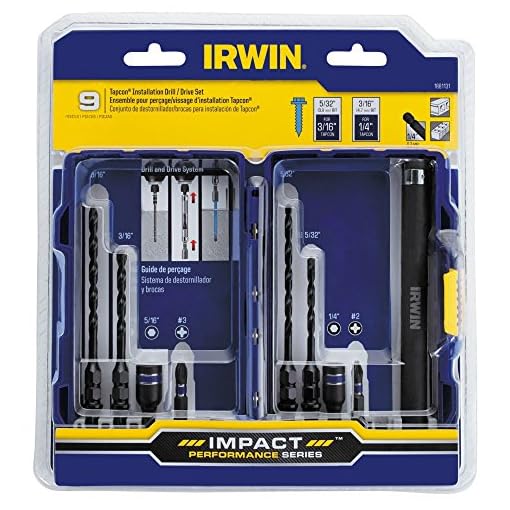 IRWIN Affect Efficiency Series Tapcon set up bits are engineered for max sturdiness and lengthy existence with Affect drivers. They’ve a integrated hex collar prevent function for drilling the very best hollow intensity for Tapcon screws, in addition to different concrete screws. There is not any want for the irritating activity of marking drill bits with protecting tape, wrapping electric twine across the bit, or the use of cumbersome prevent jewelry to get the very best intensity ‒ as soon as the hex collar is flush with the concrete floor, hollow is the very best intensity! They are to be had in more than one lengths for drilling the most typical hollow depths for masonry fastener programs. They’ve a one-piece building that withstands upper torque so much than same old fast-amendment bits which are Constructed with a -piece design. Plus, They’ve a black oxide end that resists corrosion and will increase the lifetime of the bit and a 1/four” fast-amendment shank that is designed to paintings with Affect drivers, in addition to scale back slipping in same old drill chucks. Tapcon is a registered trademark of Illinois Instrument Works, Inc.