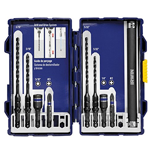 IRWIN IRWIN Tools IMPACT Performance Series Concrete Screw 9 Piece Drill-Drive Installation set with PRO Set Case for 3/16″ & 1/4″ Screws