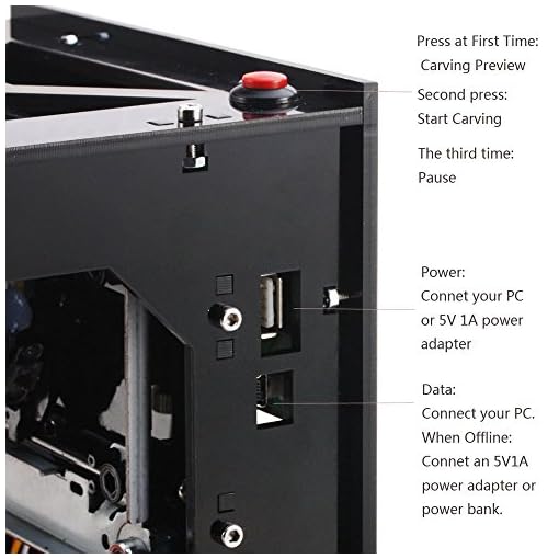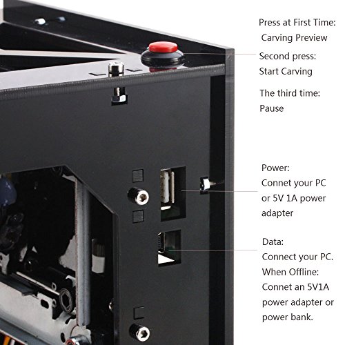 Offline operation: this machine supports operating without computer, only need to prestore a picture and connect the two usb ports to charger or power bank(not included); one button to operate.
