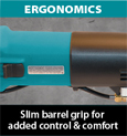 Tough 7.9 AMP motor with less weight (5.1 lbs.)