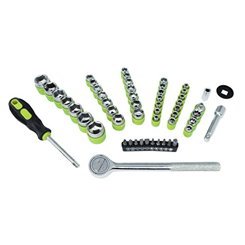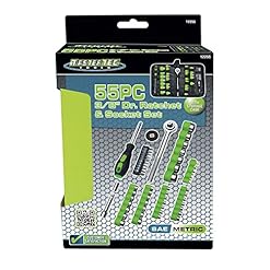 MasterTEC Compact 55pc Socket Set w/Ratchet & Lime Green Zippered Case