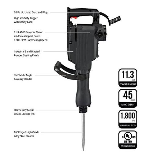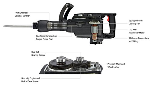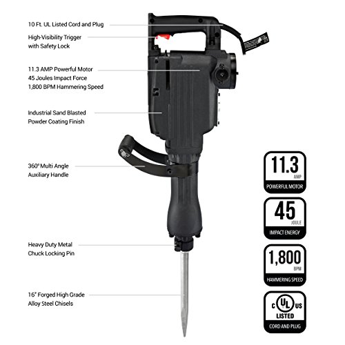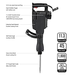Powerful 11.3 Amp high performance motor delivers 1,800 impact beats per minute with 45 joules force to easily break through concrete, brick, ground and earth