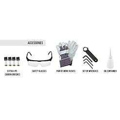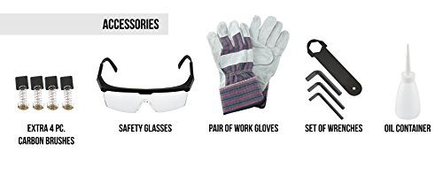 Set comes entire with equipment: 4 further carbon brushes, 1 oil box, 3 wrenches, 1 protection coverage equipment with goggles and paintings gloves