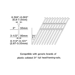 Makes use of 21 Stage nails ranging in dimension from 2″ to three-half of” Plastic Collated Spherical head