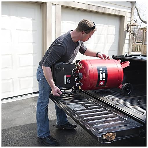Porter Cable 20-gallon compressor options an oil loose, lengthy lifestyles induction motor and pump with a completely enclosed shroud that covers running parts. Compressor is low upkeep without having for oil assessments and adjustments. Unit has a low voltage get started up.