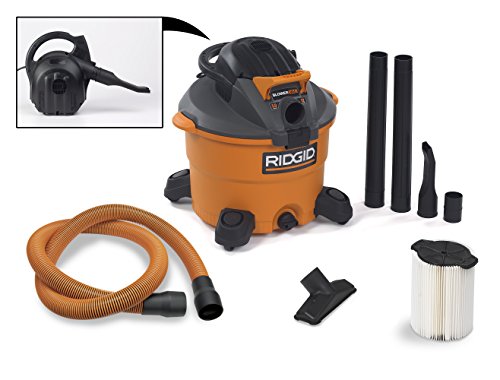 RIDGID Wet Dry Vacuums VAC1200 Heavy Duty Wet Dry Vacuum Cleaner and Blower Vac, 12-Gallon, 5.0 Peak Horsepower Detachable Leaf Blower Vacuum Cleaner with Pro-Grade Hose