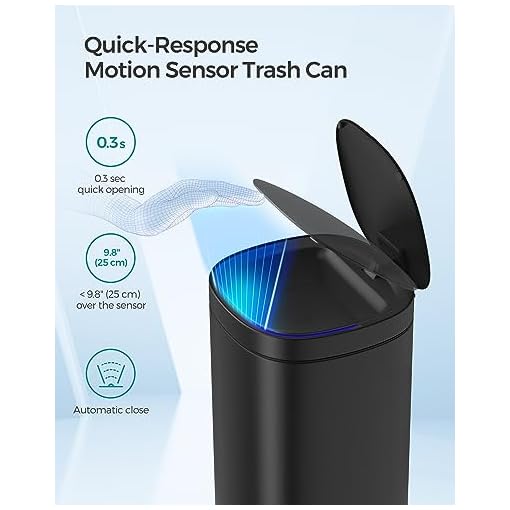 [Motion Sensor] Simply wave your hand 9.eight” or much less above the sensor, and the lid will routinely open inside 0.3 seconds, providing a handy possibility that frees you from touching the can. The lid will routinely shut 5 seconds after commencing
