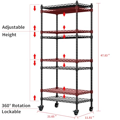 【Sturdy Construction】The wire storage shelving rack use durable metal-frame construction, which is more durable and long lasting. its perfect size of 21.7”Lx11.8”Wx47.8”H.It is easy to clean and maintain, you can wipe it directly with a damp cloth.