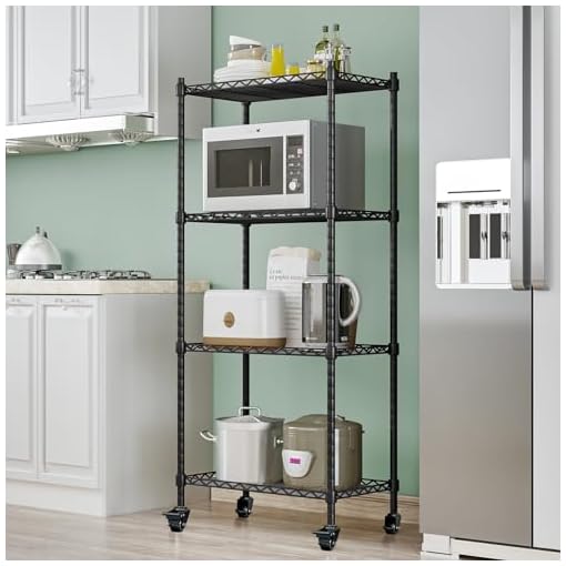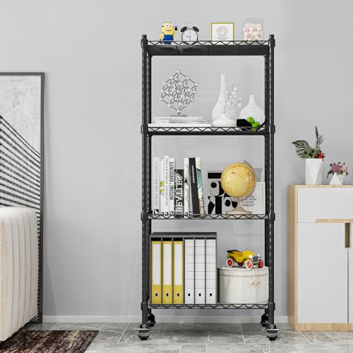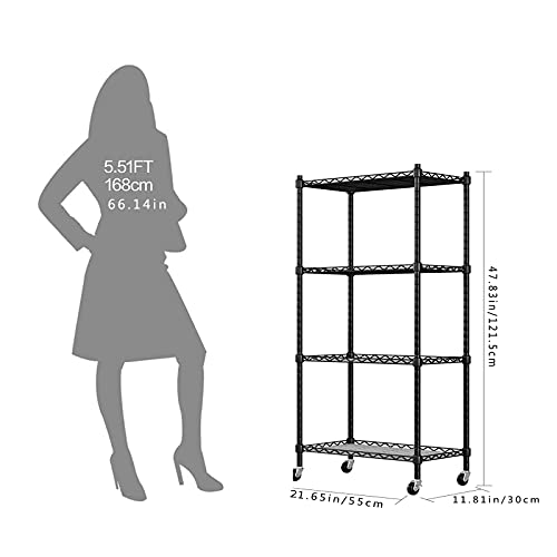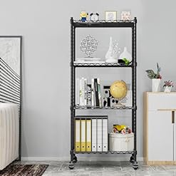 SORCEDAS Shelves 4 Tier Adjustable Utility Metal Storage Wire Rack Unit for Home Kitchen Garage Bathroom Office Indoor Black (Black, 4 Tier-with Wheel)