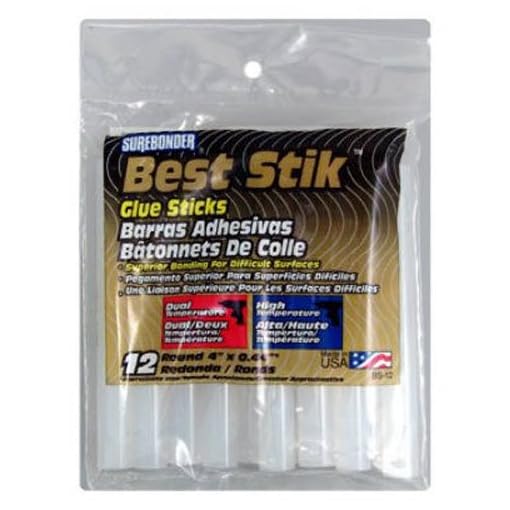 Surebonder Best Stik Heavy Duty Acrylic Hot Glue Sticks, 40% Stronger Bond, Full Size 4″- 12 Pack, Cloudy White