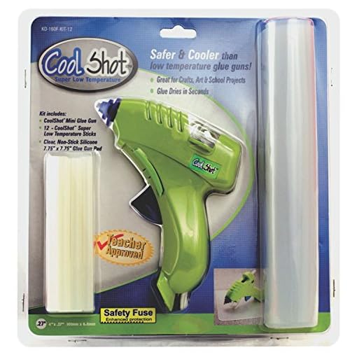 Surebonder 10W Ultra Low Temp Cool Shot Mini Glue Gun Kit with 12 Glue Sticks, Bonds Delicate Materials Like Paper, Fabric, Foam, Balloons – Clear
