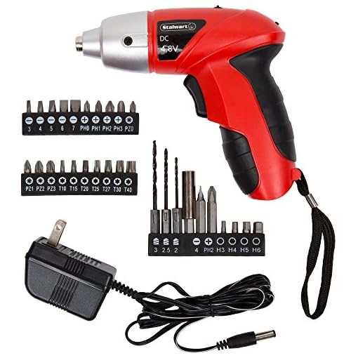 25-Piece Electric Screwdriver Set – Cordless Drill with LED Work Light, Automatic Spindle Lock, and Screw Driver Bits by Stalwart (Red)