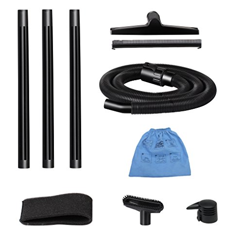 Includes: 6 ft. hose, 8 ft. Cord with Cord Wrap, 3-piece extension wand, noise diffuser, 2-in-1 Utility Nozzle, Floor Brush/Squeegee Nozzle, reusable cloth filter, and a reusable foam sleeve