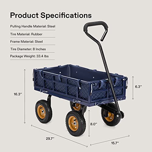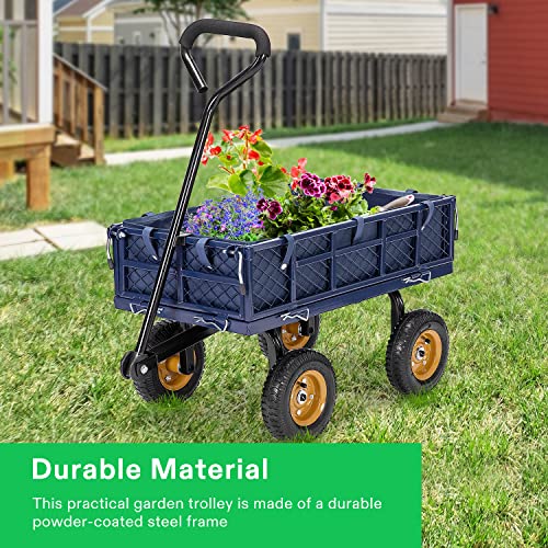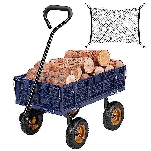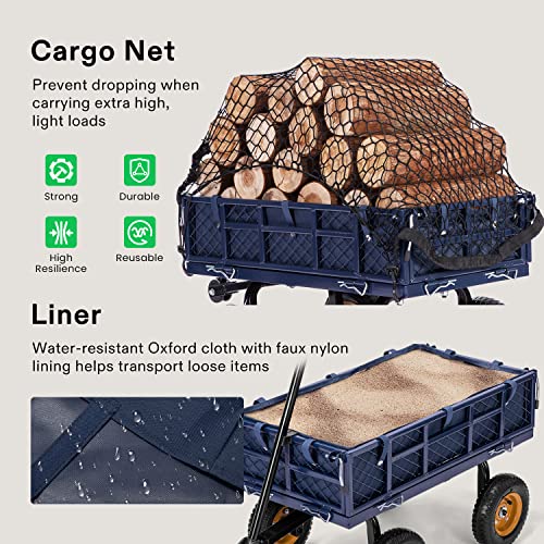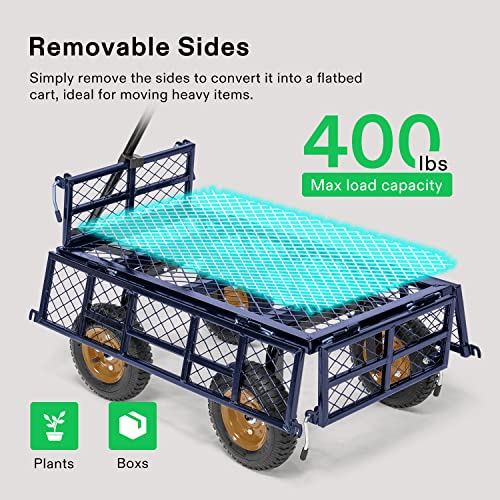 VIVOSUN Heavy-Duty Steel Garden Cart, 400-Pound Capacity, Steel Utility Garden Wagon with Removable Sides, 8″ Pneumatic Tires, Liner, Cargo Net, Blue
