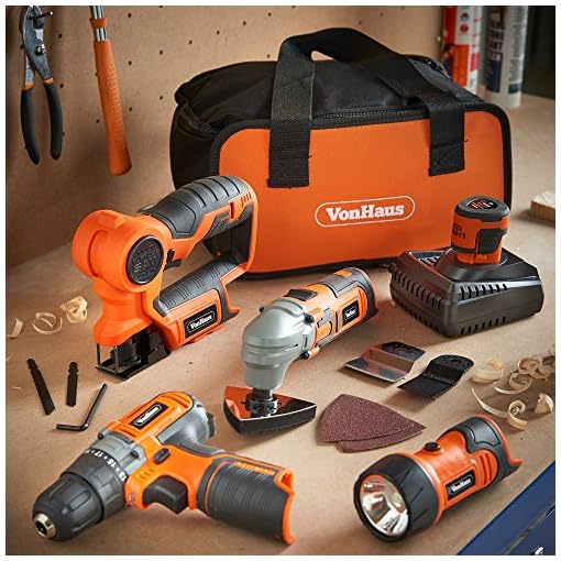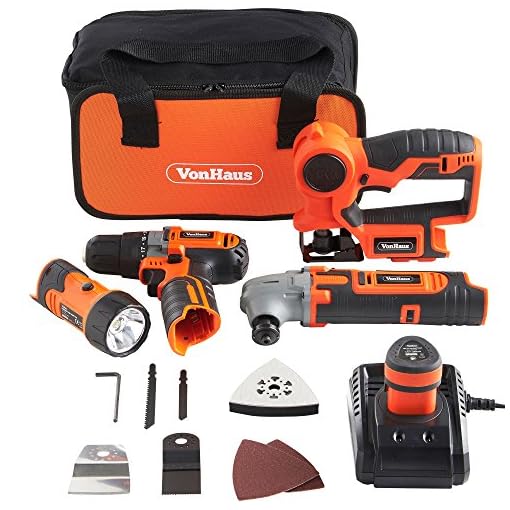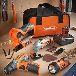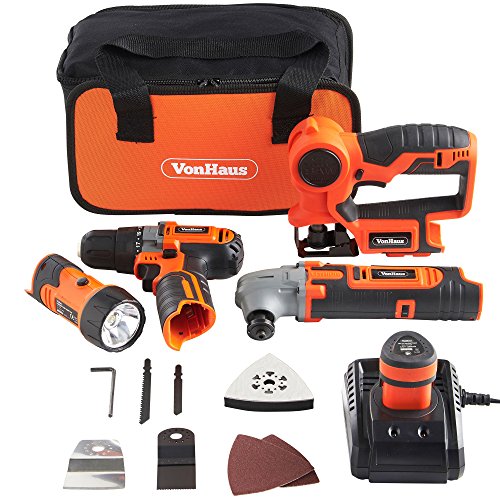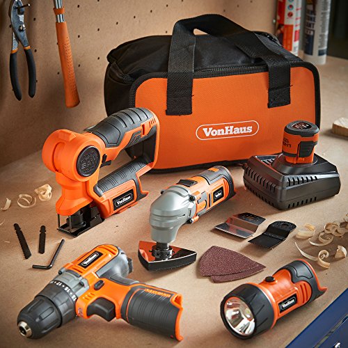Cover your entire DIY wishes with the four-Piece Cordless Energy Instrument Equipment from VonHaus. The Equipment features a 2 Speed Drill / Motive force, Multi Objective Noticed, Oscillating Multi Instrument, Flash Gentle and lift case.