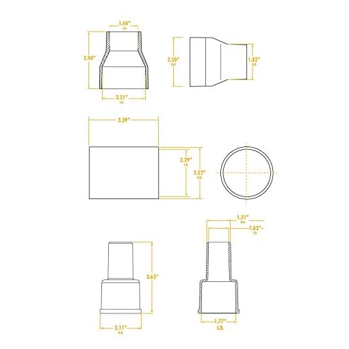 Universal shop vacuum adapters provides flexibility by allowing users to continue to use the 2-1/2-inch diameter hoses for larger debris collection and maximum airflow, but use 1-7/8-inch diameter or 1-1/4-inch diameter wet dry vacuum attachments and shop vacuum accessories.