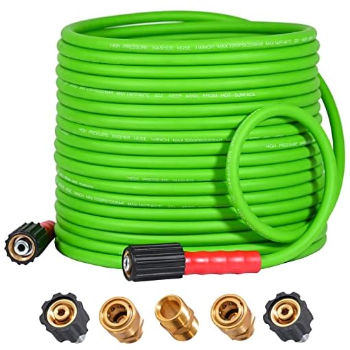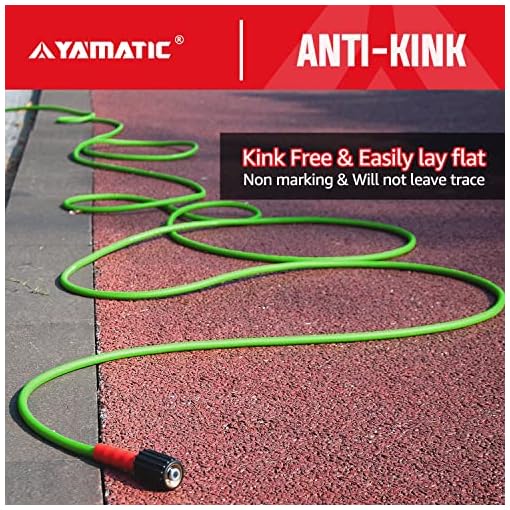 GREAT KINK RESISITANT – This kink resistant with smallest bend radius flexible pressure washer hose prevents you from having to stop what you are doing to unkink the hose to get the water flowing again, making cleaning your car, floor, windows, driveway, roof, siding etc. Doesn’t kink and lightweight.