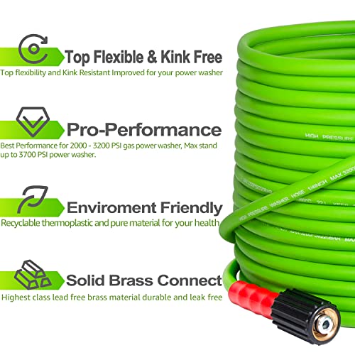 PROFESSIONAL PERFORMANCE – This 1/4″ Power Washer Hose supports your residential and light commercial power washing job, best performance for rated 2000-3200 working PSI, and fit most gas power washer and electric pressure washer stand up to 3700 PSI.
