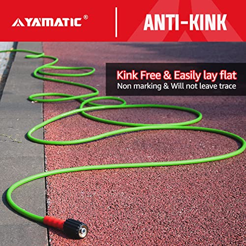 YAMATIC Super Flexible Pressure Washer Hose 50FT for Power Washer Replacement, Kink Resistant Extension With Leak-Free M22 Female & 3/8″ Quick Connect Adapters, 1/4″ 3200 PSI, Green